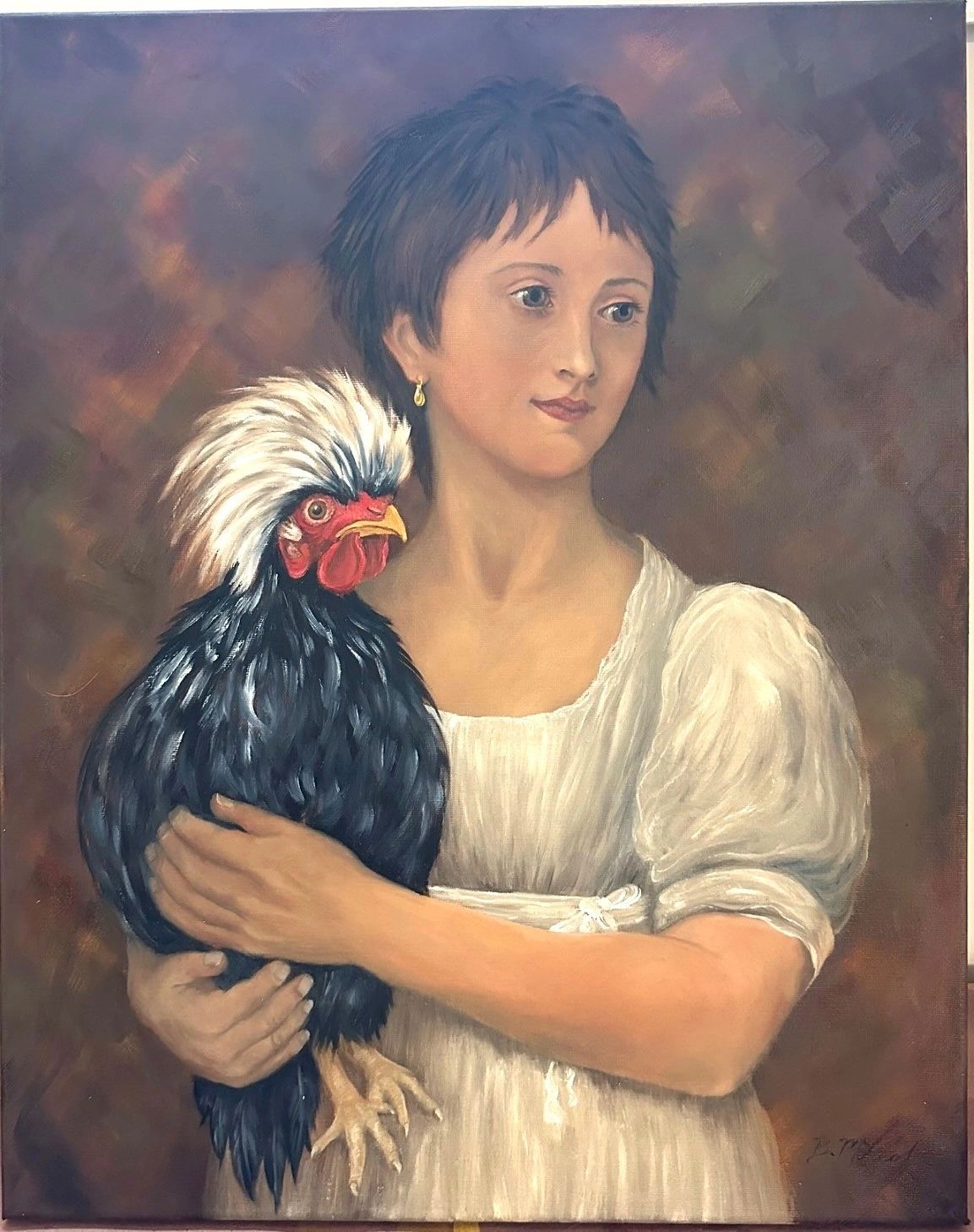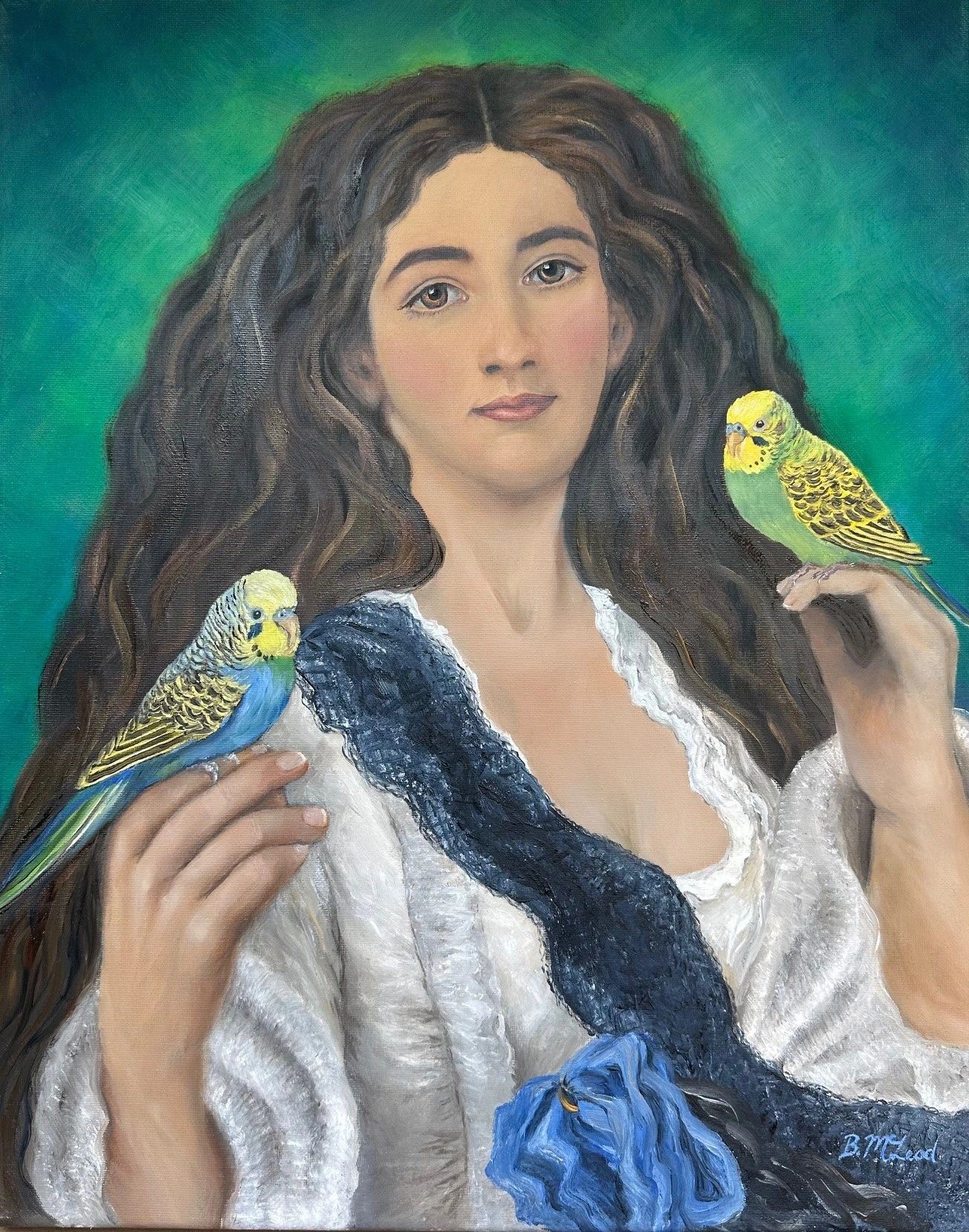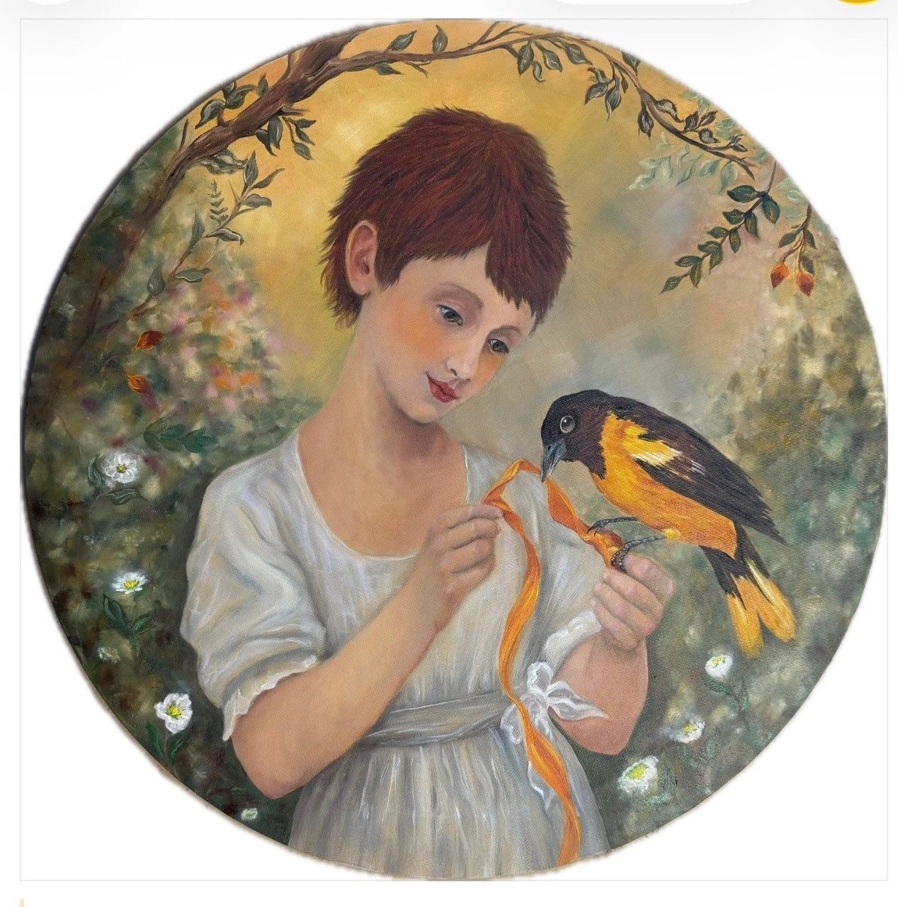 This series grew out of my love for painting people and animals. There are so many diverse species of birds, I thought it would be fun to combine various birds in scenes with people. One of my most favorite approaches has been re-creating classical paintings originally done by the Old Masters, and adding in different colors and especially birds! It also gives me the opportunity to practice painting clothing, which I find to be very challenging. I am working on a coffee table book summarizing this series, which is filled with facts about different birds. The book will be on sale at Gallery 57 in Annapolis, and also through Muddy Creek pop up exhibits.